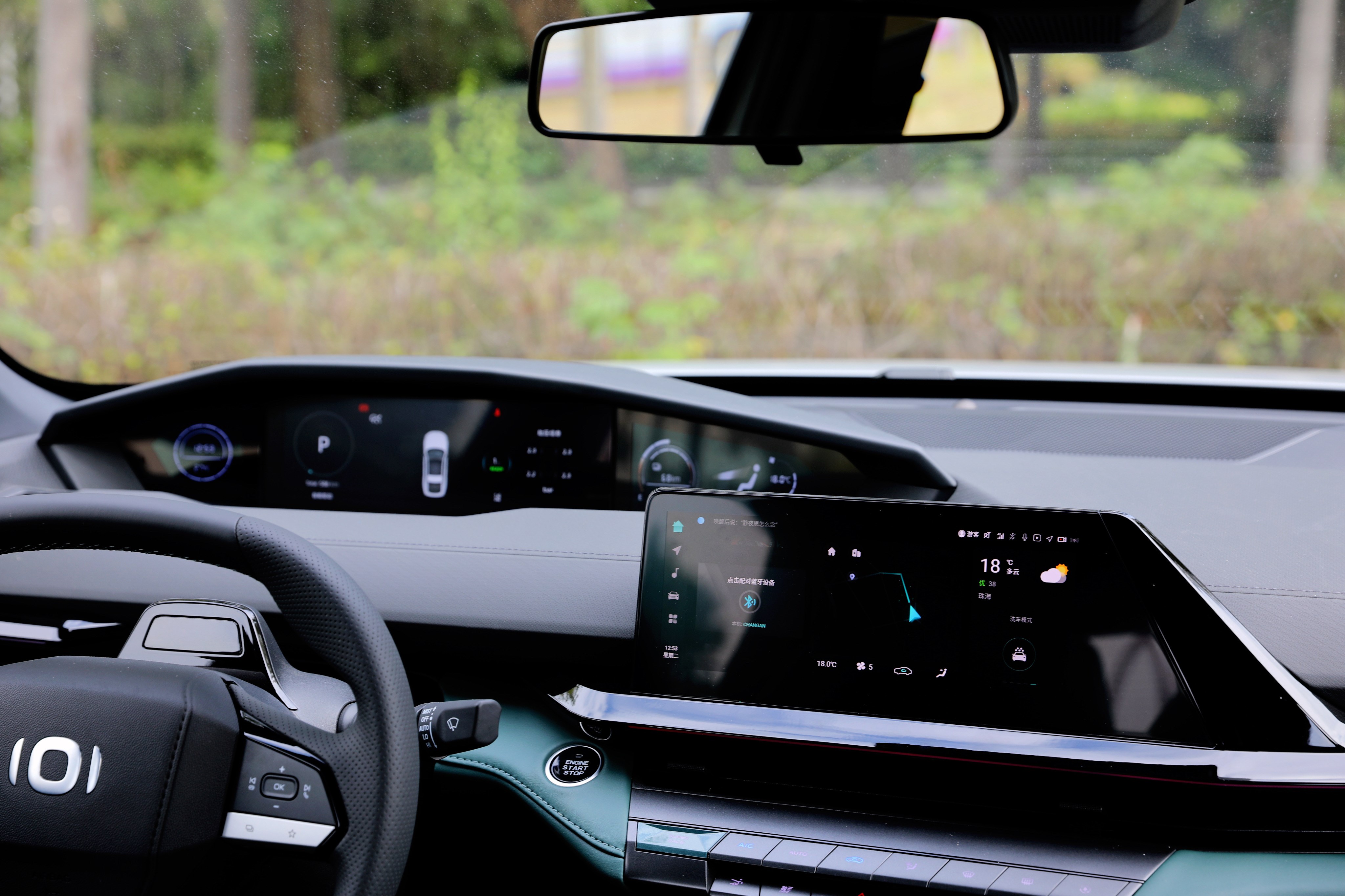 進入車內(nèi),長安啟源A06座艙風格很獨特,富有層次感的造型讓你第一眼會感覺很復雜,但是仔細品味一番后,它特殊的風格可以說是別有一番風味。啟源A06提供流沙白和林蹤綠兩種面料配色,個人更喜歡林蹤綠的配色方案,更能體現(xiàn)出動感、時尚的一面。