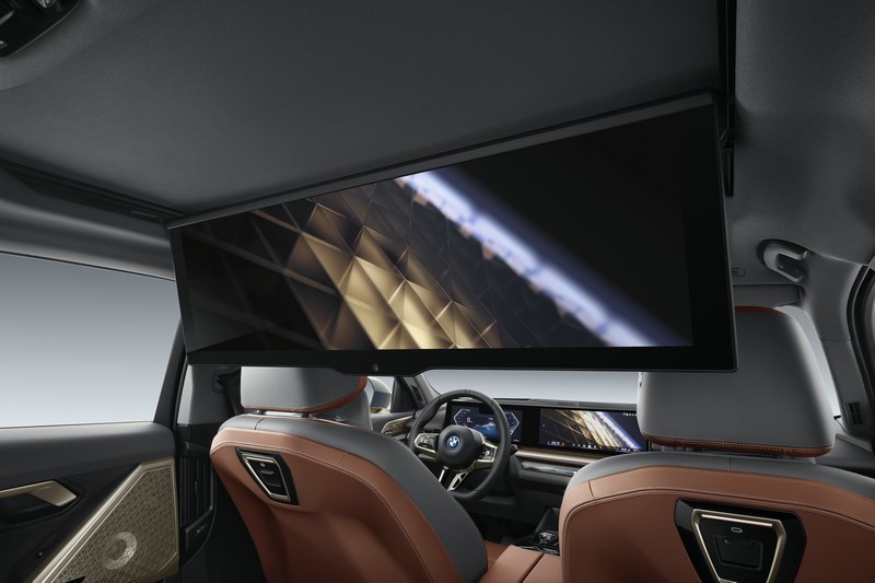 來到后排,最令消費者心動的當屬后排31英寸懸浮式巨屏,擁有8K超高分辨率,坐在后排看視頻、開會、投屏玩游戲等都可以,可以說尊貴享受再上新臺階的同時也進一步強調出智能豪華的屬性。