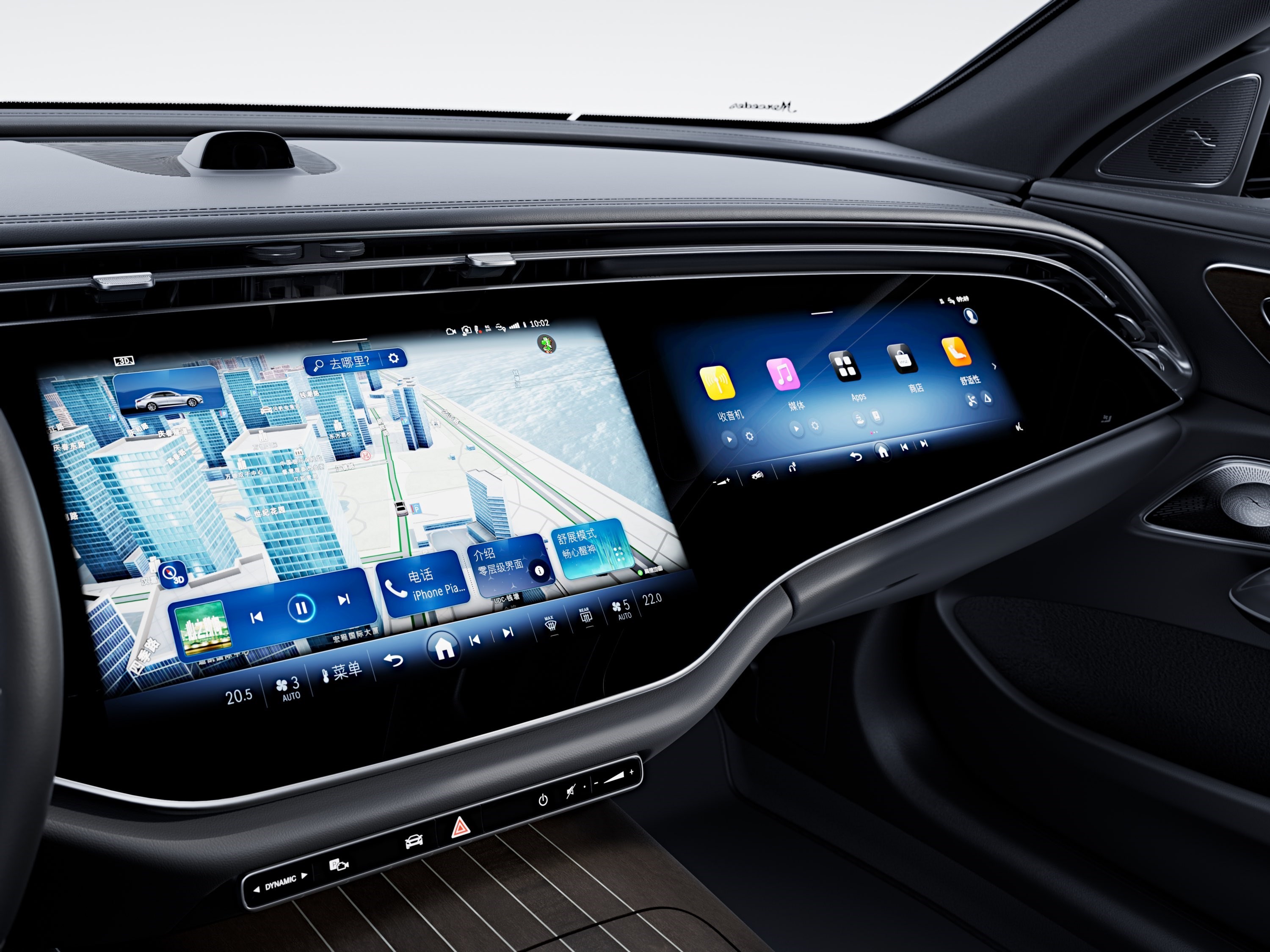 進入全新奔馳E級車內,可以說豪華+科技風相碰撞,整體氛圍非常吸睛,而車內最耀眼的部分自然是全新大尺寸MBUX超級屏,這塊屏幕首發(fā)搭載了第三代MBUX智能人機交互系統(tǒng),同時也是豪華品牌中首款搭載高通8295芯片的車型,從而實現(xiàn)更多第三方車載應用的搭載,例如抖音、玩游戲等等。此外,全新奔馳E級新增自拍攝像頭,支持人臉識別以及場景模式,便于用戶通過Zoom、Webex等拍攝照片或參加視頻會議(支持5G網(wǎng)絡)